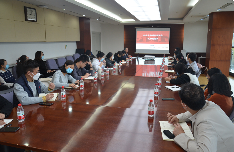 11月11日上午9时,东北大学2022年度内部控制建设专题培训在主楼410会议室举行,培训由计划财经处副处长、高级会计师周斌主讲,学校各内部控制建设相关部门业务骨干参加了这次培训。