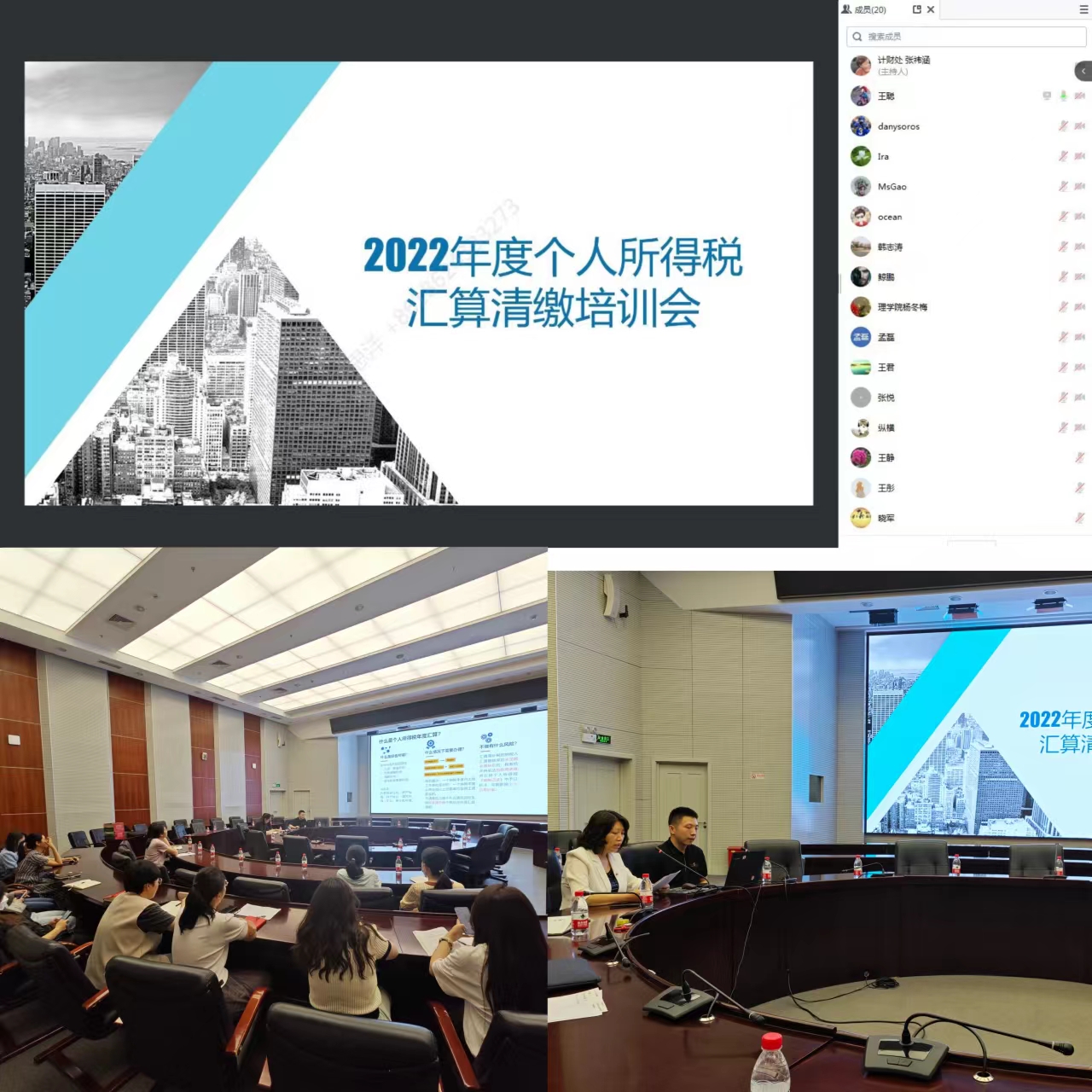 2023年6月9日上午,计财处在主楼824召开了个人所得税年度汇算清缴培训会,会议采取线上、线下形式举行。会上,王聪为与会师生介绍了个人所得税年度汇算清缴的相关政策规定、可享受的税收优惠政策、操作流程等,针对师生比较关注的专项附加扣除操作易错点等事项进行了重点讲解。会议设置互动环节,财务人员为师生详细解答了相关问题。