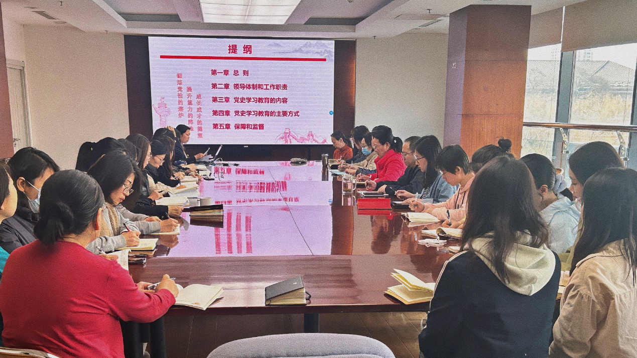 会上,组织学习了中共中央最新印发的《党史学习教育工作条例》(以下简称《条例》),四名党员领学了《条例》的全文。全体党员了解了中共中央出台《条例》的目的;学习了中共中央对党史学习教育工作的总体要求、主要任务和领导体制,党史学习教育的主要方向和主要方式方法;基层党组织在党史学习教育工作中的主要职责,同时要做好党史学习教育工作的科研支撑、学科保障、人才保障、经费保障、检查评估等工作。