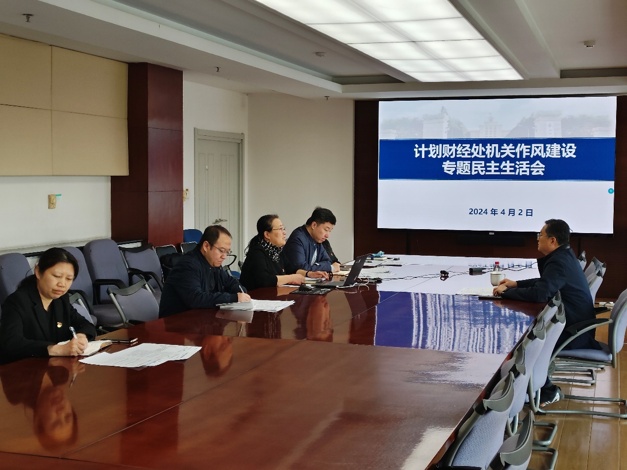 2024年4月2日上午,计财处领导班子召开“机关作风建设”专项巡察整改专题民主生活会,党委常委、副校长徐峰到会指导,会议由曲桂贤主持,全体班子成员参加会议。
